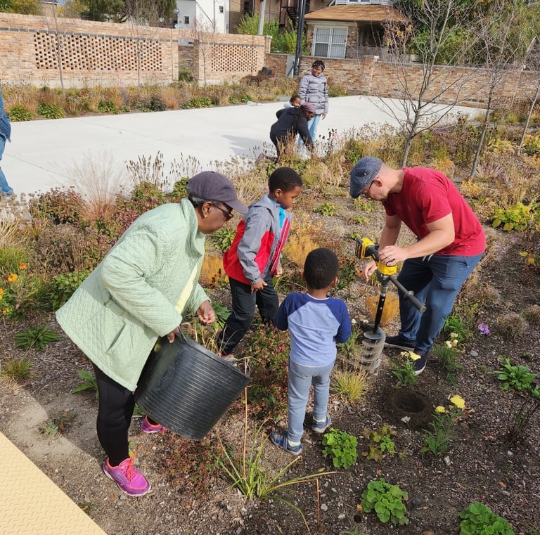 Through thoughtful design and partnerships, we create habitats that boost biodiversity and food access in Chicago and Chicagoland cities. We lead with care, curiosity, and respect, listening closely to residents, partners, and the land itself before proposing solutions. We commit to clear communication, thoughtful design, and attentive implementation on every site, and we continually refine our work so that each garden, courtyard, or campus we touch remains vibrant, inclusive, and regenerative for years to come.